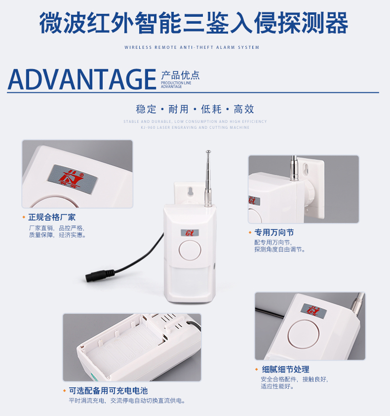 HT-8080-2W 無(wú)線智能三鑒入侵探測(cè)器